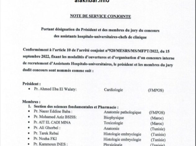 انطلاقة مسابقة لاكتتاب 66 أستاذا استشفائيا لكلية الطب