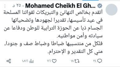هنأ الرئيس محمد ولد الغزواني القوات المسلحة الوطنية بعيد تأسيسها الذي يصادف الـ25 من شهر نوفمبر. وغرد الرئيس على منصة…