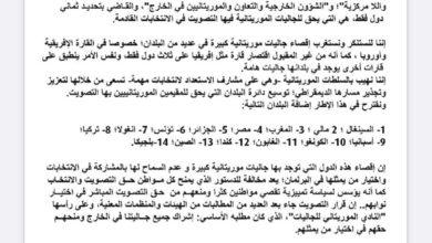 “النادي الموريتاني للجاليات” يستنكر قرار الحكومة تحديد 8 دول فقط لتصويت الجاليات