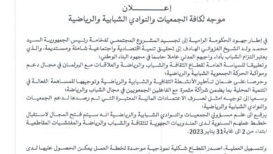 (إحاطة)- أعلنت وزارة الثقافة والشباب والرياضة، اليوم الثلثاء، أنه سيتم فتح المجال لاستقبال ملفات المتعلقة بخطط العمل السنوية للجمعيات والأندية…